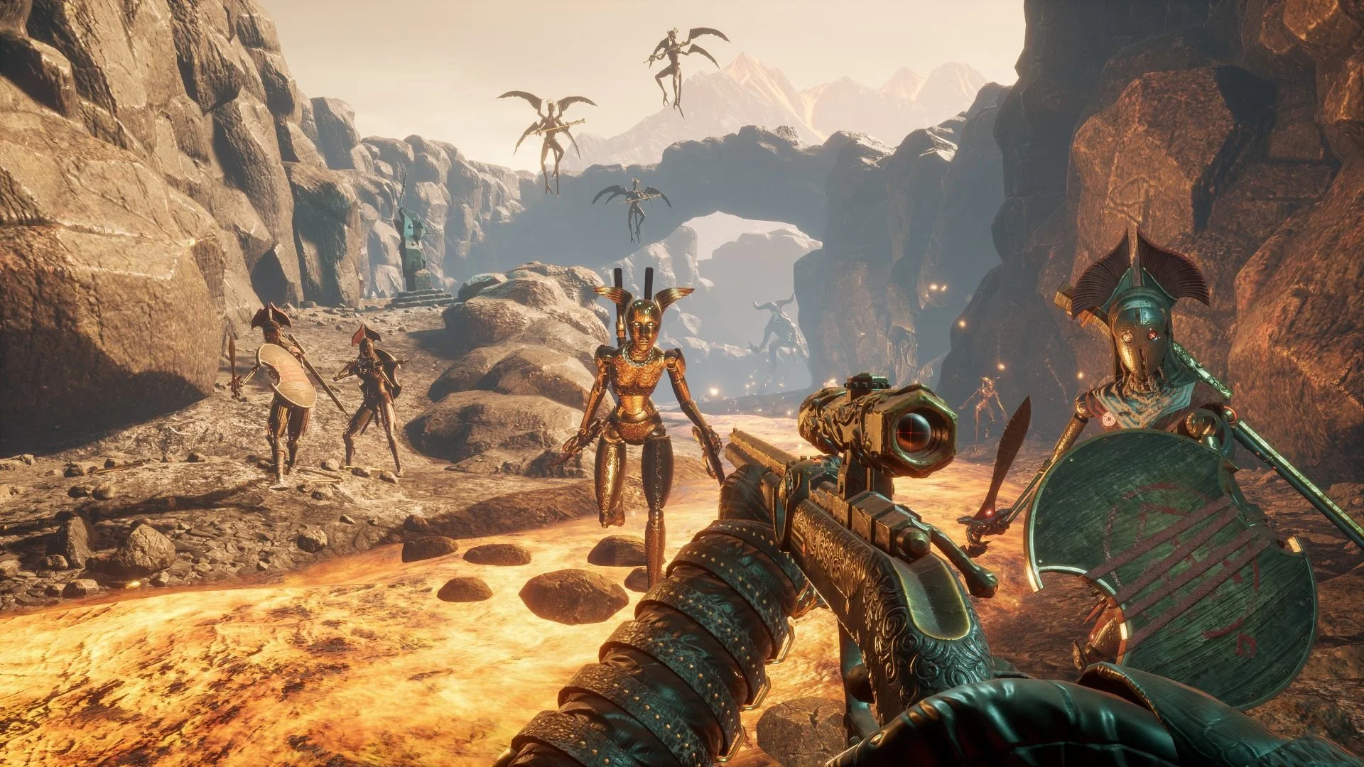 PERISH является захватывающим проектом, который разработан в жанре шутера, инди, экшена со съемкой от первого лица. Он отличается оригинальным визуалом, насыщенным процессом игры. Здесь игроку требуется направиться в Чистилище с большим количеством искаженных монстров. Там ему надо искупить грехи, прорываясь через зомби и попутно уничтожая чудовищ. В конце пути - осуществить обряд Орфея и упокоиться в божественном Элизиуме. Двигаясь к цели, геймеру нужно улучшать навыки протагониста, собирать местную валюту для покупки оружия, улучшать припасы, тратить ресурсы в Пантеоне в случае смерти. На пути ему предстоит натолкнутся на Повелителей раздора, сразиться с опасными боссами, участвовать в схватках с мистическими гладиаторами, используя 1 из 10 разновидностей холодного и огнестрельного оружия. Также ему предстоит побывать в скалах Тесея, отыскать литейные цехи Гефеста и искать верный путь через запутанные лабиринты, золотые озера. При этом игроку надо общаться со жрицами, торгующими снаряжением, чтобы искать правильный путь. Игра имеет неповторимое исполнение, крутой визуал, общую атмосферу страха, которую дополняет отличное сопровождение звука.