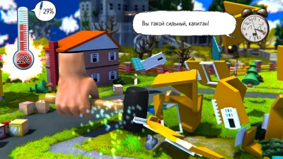Starstruck: Hands of Time – необычная игра, объединяющая в себе несколько жанров. Для прохождения основной сюжетной линии доступен музыкальный режим. Чтобы справиться с ним, пригодится гитара-контроллер от Guitar Hero или Rock Band. Подбирая правильный ритм, нужно уворачиваться от вражеских атак. В игре предусмотрены два уровня сложности: «Обычный» и «Мастер». Если ритм-сегмент не заходит, можно включить опцию «Без рук» и просто наслаждаться музыкой без активного геймплея. Другой режим ставит игрока в роль гигантской руки. Она умеет крушить постройки, помогать союзникам находить обходные пути и решать головоломки разной сложности. Для этого доступны различные инструменты, такие как молоток или отвертка. Предусмотрена возможность менять цвет кожи руки и ее размер, что добавляет немного кастомизации. Третий режим переносит игрока в миниатюрный мир, оформленный как диорама. Визуал выполнен в мультяшном стиле, а персонажи выглядят очень симпатично. По мере прохождения сюжета появляется шанс узнать, каким образом герои связаны с грядущим концом человечества. Такое смешение стилей и жанров делает проект по-настоящему уникальным.